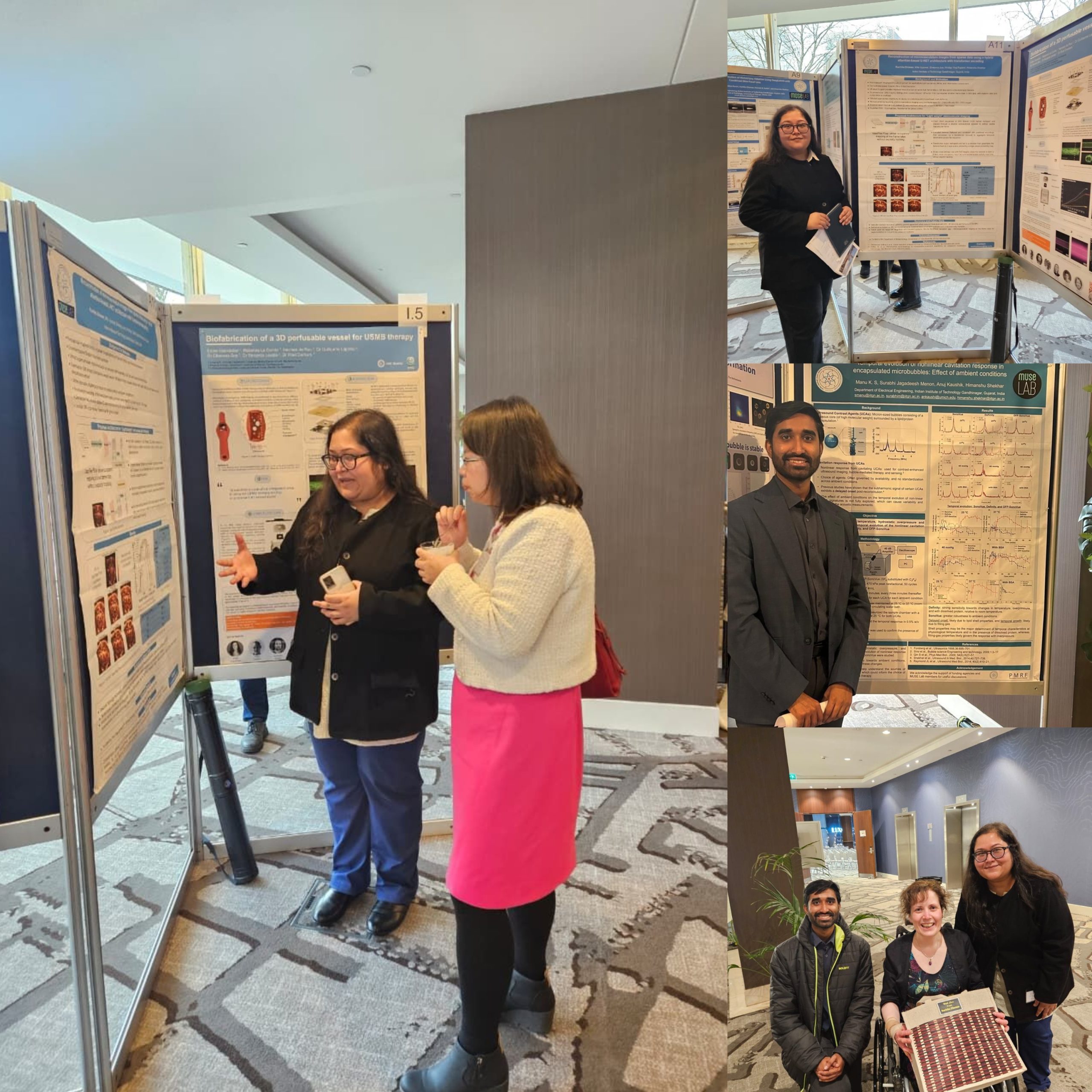 Members of the MUSE Lab, Ruchika Dhawan and Manu K. S., presented two talks and three posters at the European Symposium on Ultrasound Contrast Imaging in Rotterdam, Netherlands, showcasing work spanning contrast-enhanced imaging and acoustic metamaterials. The lab thanks the symposium organizers and the ultrasound research community for valuable feedback and discussions.